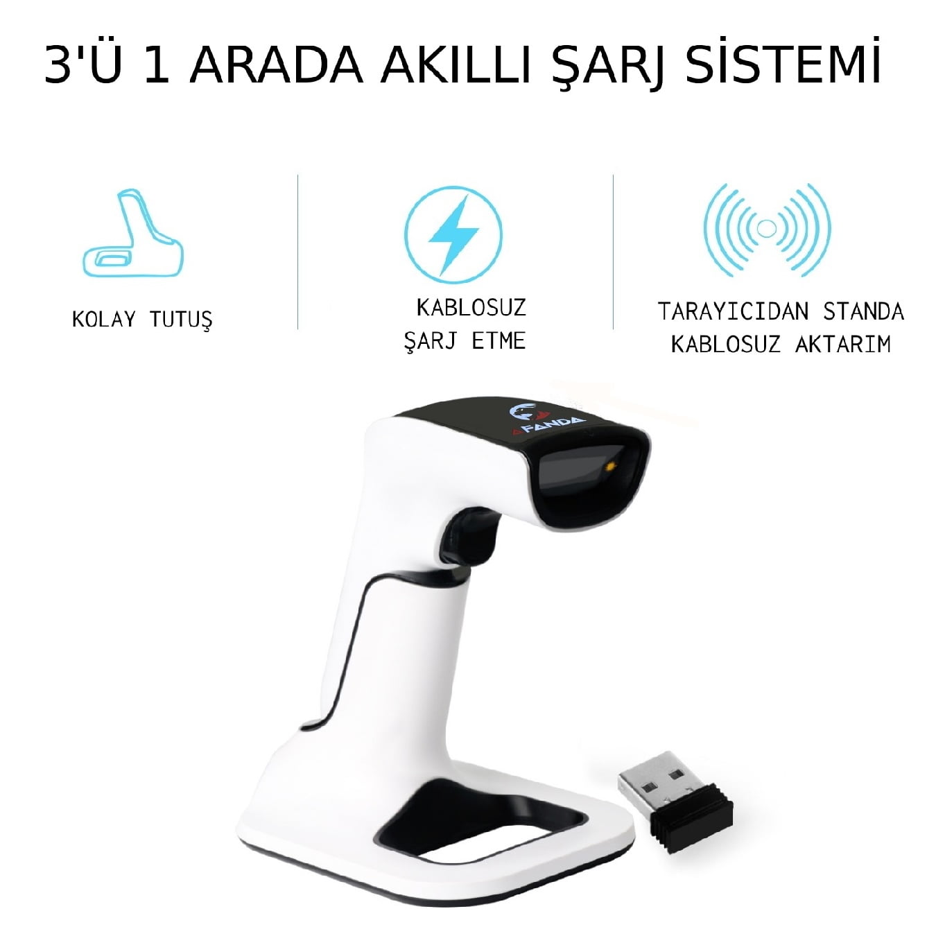 Afanda AF-4155 2D Bt+Wf Kablosuz Barkod Okuyucu, perakende mağazaları, depolar, kütüphaneler ve diğer birçok işletme için ideal bir barkod okuyucu çözümüdür.
